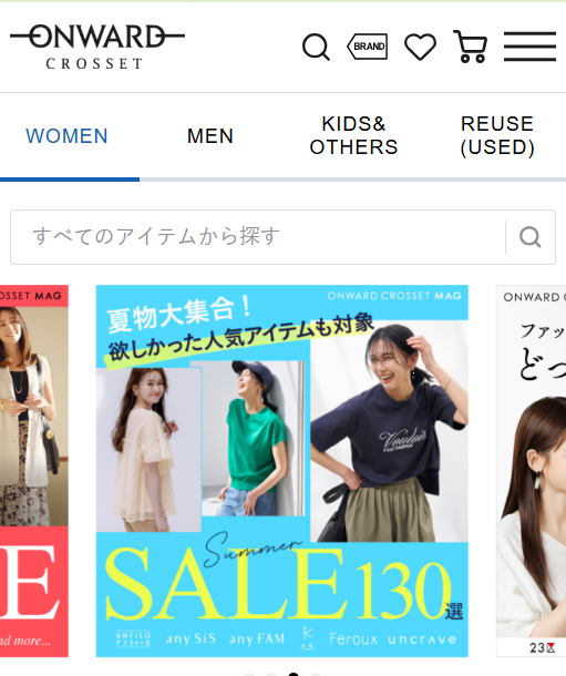 | 品揃え | トップス・スカート・パンツ・ワンピース・アウター・スーツ・バッグ・靴・アクセサリー |