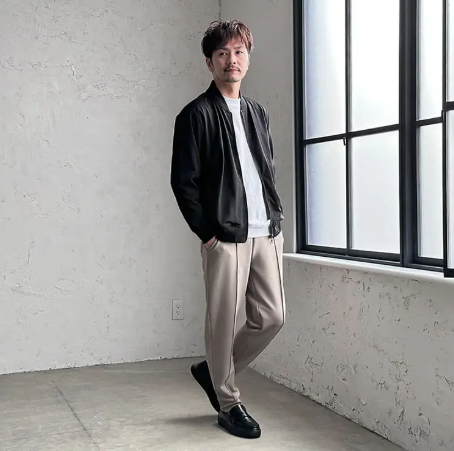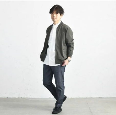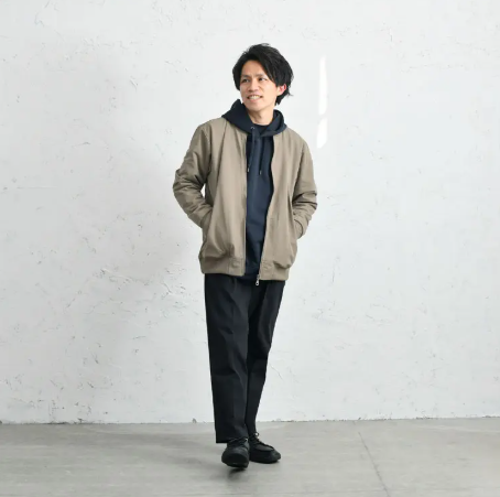 MA-1ジャケットはカジュアルさと男らしい雰囲気を演出できるアイテムなので、ラフな中にも上品なイメージのあるジョガーパンツと相性が良いです。上手に組み合わせると写真のようにリラックスムードもありつつ、どこか品の良いコーデが出来上がります。
