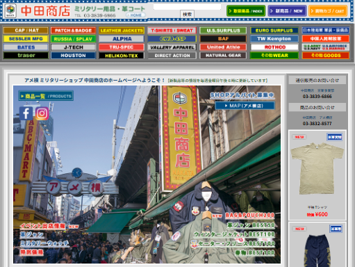 中田商店は、ミリタリーショップの元相とも言えるショップで上野アメ横に店舗を持っています。世界中のミリタリーアイテムを買うことができ、定番アイテムから、勿論少し変わったアイテムを買うことができます。USEDからデットストックどちらも扱っています。米軍放出品・実物も扱っています。その他現行のアイテムも取り扱っており、とにかく商品数が多いので、ミリタリーのアイテムが欲しい時は、とりあず最初に見ることをオススメします。今流行りのECWCSも扱いあり。