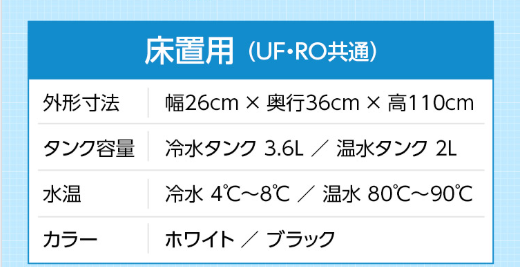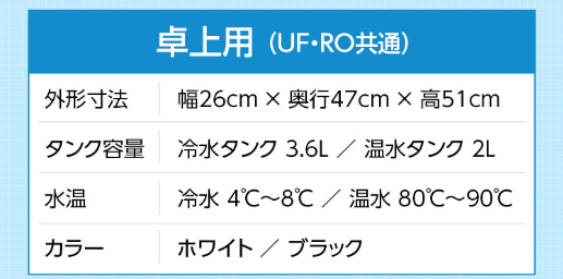 ミネラルタイプ(UF)と純粋タイプ(RO)が選べます。