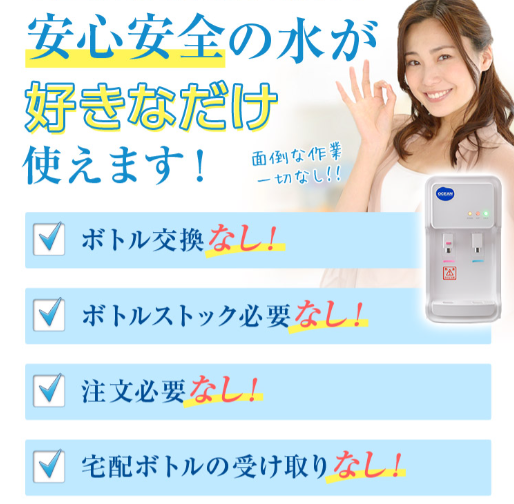 ボトル交換不要で省スペース。