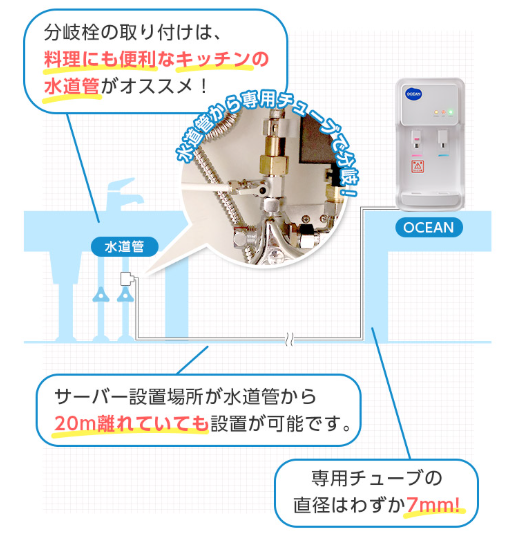 • ウォーターサーバー専用の水栓を付ける