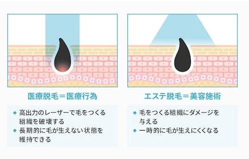出典:「医師免許を有しない者による脱毛行為等の取扱いについて」(平成13年11月8日付医政医発第105号)、「美容ライト脱毛」(一般社団法人日本エステティック振興協議会)