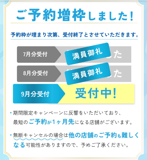 おかげさまでご予約殺到中