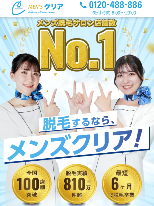 この章では、以下の基準のもと、『費用が安く、コスパが良い安全な脱毛サロン』を厳選した5つを紹介します。1.メンズクリアは全身脱毛の1回単価が最安値級で業界大手の脱毛サロン