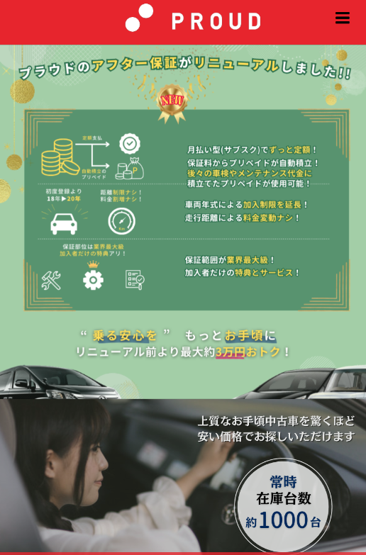 全国対応、ご来店不要!お手頃価格で中古車が手に入る中古車販売店プラウドの自社ローン。他社でオートローンが通らなかった方も、独自の審査基準で再審査があるのでお気軽にご相談いただけます。