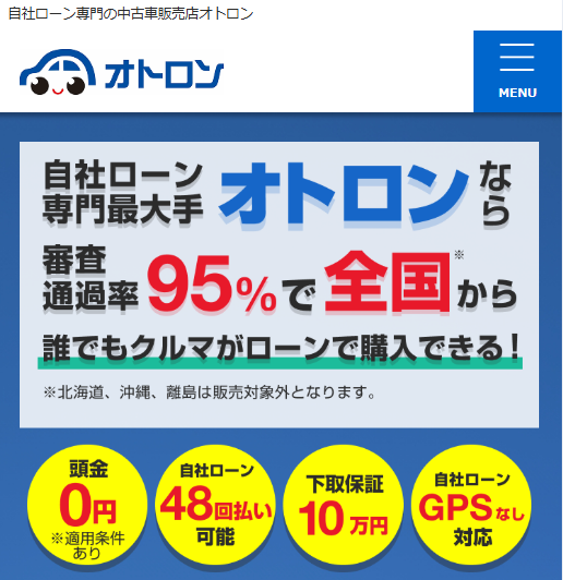 独自の自社ローンで、誰でもクルマが分割払いで購入可能!他社でローンが通らなかった方も歓迎しています。中古車をローン購入でお考えならオトロンに相談してみるとよいでしょう。