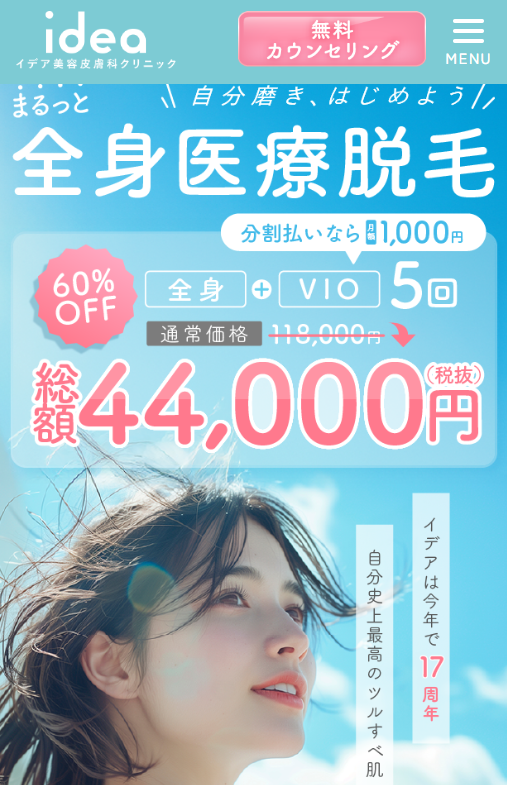 イデア美容皮膚科クリニックの脱毛料金プラン