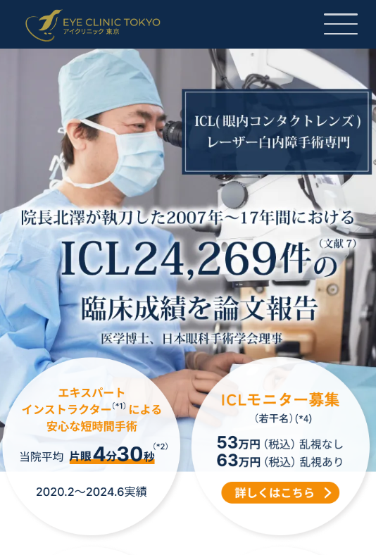 品川近視クリニックは、レーシック135万件以上、ICL8万件以上の治療実績がある人気のクリニックです。