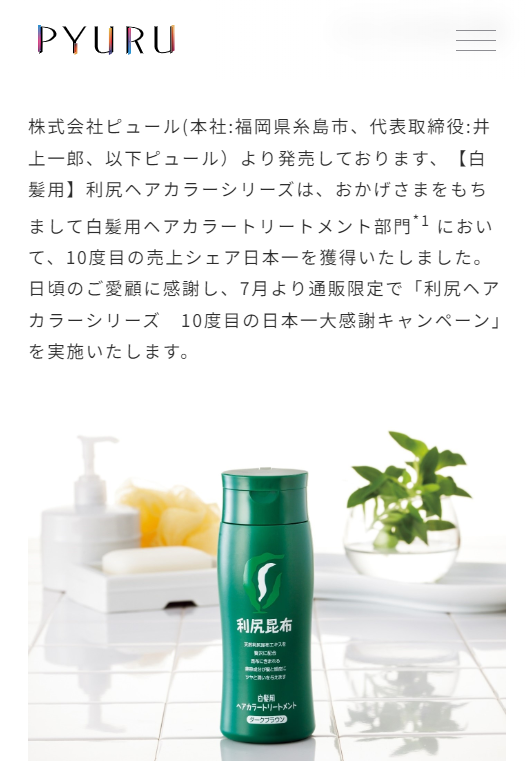 (*1 利尻ヘアカラーシリーズ2009年6月より2022年6月までの累計販売本数(自社調べ) )(*2白髪用ヘアカラートリートメントブランドシェア2015〜2021年全国第1位。白髪用ヘアマニキュアブランドシェア2011〜2014年全国第1位。株式会社富士経済「化粧品マーケティング要覧2012〜2022」調べ )